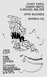 Outpost Artists Resources supports new creative work through its residencies, and events – its mission is to serve artists in need of technical assistance with video, audio, and physical computing based art projects and to foster a dialogue between visual art and experimental music. Outpost hosts gallery exhibitions, artists talks, screenings and events that pair visual art, video, experimental music, and performance in an effort to bring adventurous audiences challenging interdisciplinary projects.