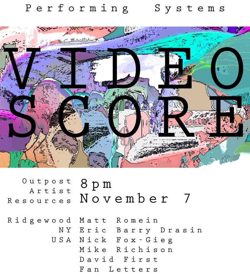 NOVEMBER 7TH, 8pm AT OUTPOST: PERFORMING SYSTEMS Performing Systems is a series investigating contemporary practices in New Cinema and Realtime Video Performance. Through a broad survey of technologies and aesthetics, we seek to understand the language of Realtime that defines our historical moment of technology and art. In doing so we simultaneou ...